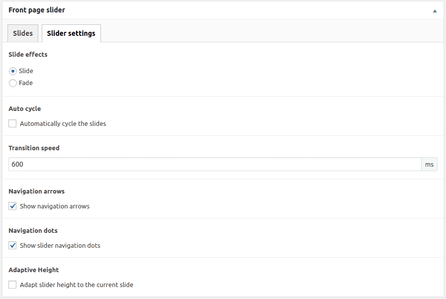 • The slider settings can be folded so once the slider is configured it doesn’t take up space for editing of the rest of the page.